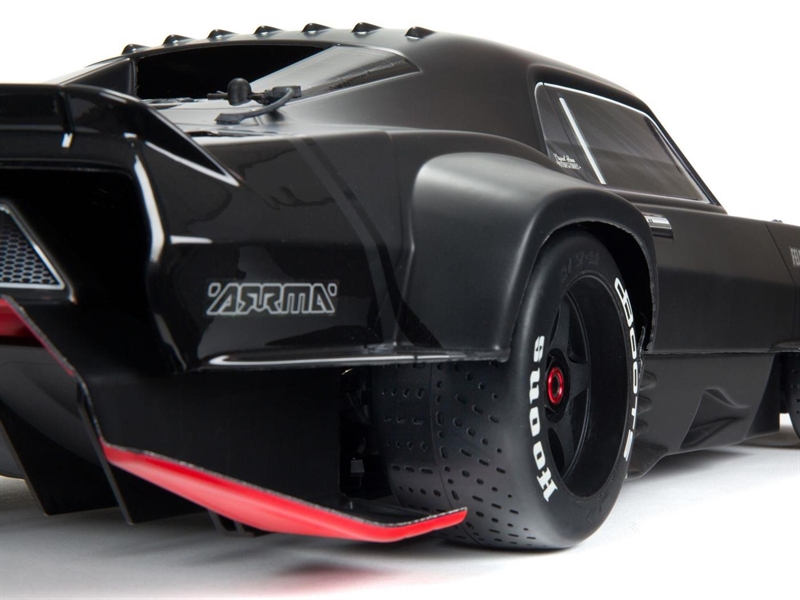 The multi-part, undercut muscle car body design with an aerodynamically adjustable wing delivers standout street bashing style. It can also be customized with the included accessory kit and decals to provide scale muscle car looks the way YOU want them. The FELONY™ 6X BLX Street Bash RTR's eye-catching appearance extends to the realistic 5-spoke wheels mounted with dBoots® Hoons™ all-road tyres. For authentic muscle car handling, ARRMA® engineers have included regular front and larger rear tyres, with the front and rear gearbox ratios matched to the tyre sizes.