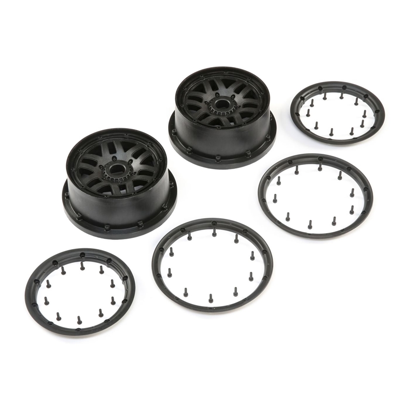 LOS Wheel & Beadlock Set, Black (2): 5ive-T 2.0