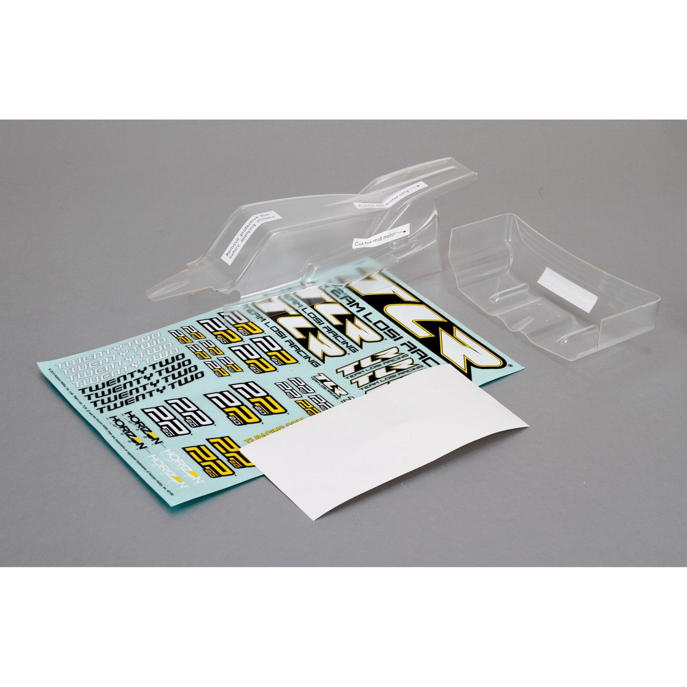 TLR Cab FWD Body & Wing Set, Clear w/Stickers 22 2.0