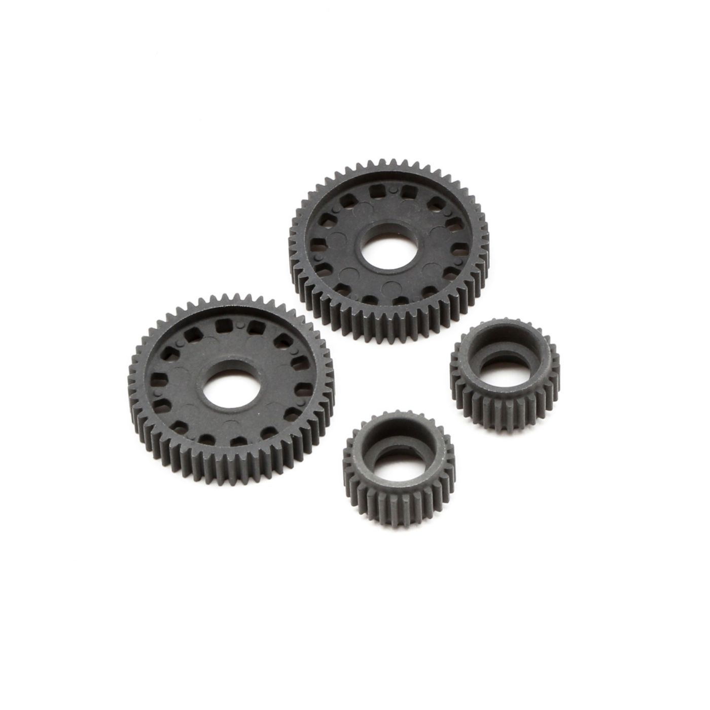 TLR has taken their proven composite idler and ball diff gears from the 22 platform and machined them narrower to maximum performance in spec racing classes. This reduce both rotating mass, and gear drag in the transmission so that more power makes it from the motor to tires.