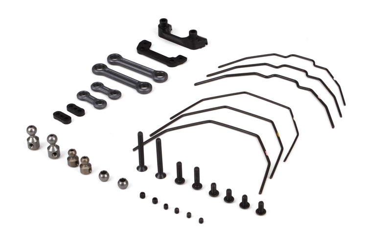 Team Losi Racing has found the addition of sway bars to the 22-4 to be a powerful tuning aid. Including everything needed to tune with both front and rear sway bars, this kit includes all mounting hardware, 3 front sway bars, and 3 rear sway bars for optimal tuning.