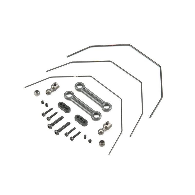 The TLR race team has found the addition of a rear sway bar to the 22SCT 3.0 to be a major improvement to the handling and balance when paired with the front sway bar set (TLR334001). With the higher center of gravity on the 2wd SC's driven by the larger higher bodies, bumpers and body mounts, the addition of the sway bars helps to control the chassis roll for more consistent handling, a flatter handling truck around the track and overall quicker lap times.