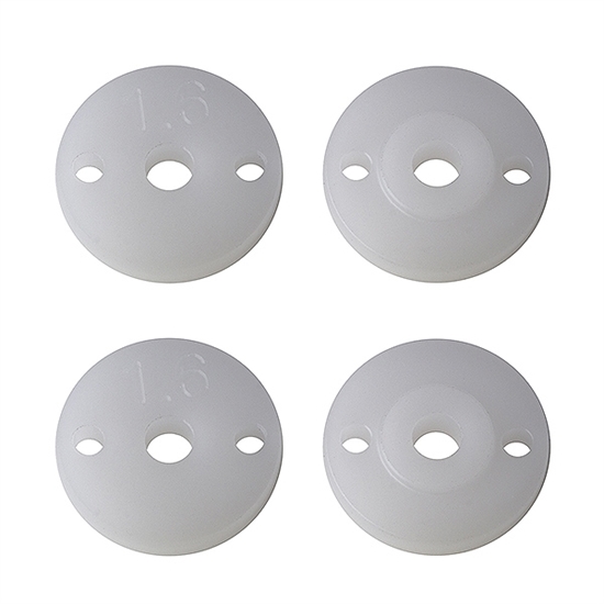 Factory Team introduces a new tuning option for off-road 12mm shocks. The new 2mm thickness V2 shock pistons decrease damping and pack compared to their standard 2.5mm thickness kit counterparts. Keeping the same 2-hole valving, the shorter thickness piston allows for faster fluid flow, and less pack (pack = increased rate of resistance) while the shock takes fast impacts from jumps and bumps. This results in a small shift, giving the car more traction and less pack, which racers can tune for an advantage in a wide range of conditions.