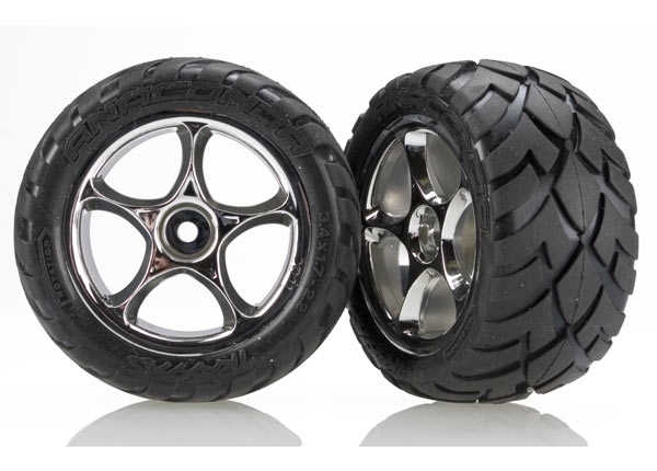 TRAXXAS Tires & wheels, assembled (Tracer 2.2" chrome wheels, Anacon