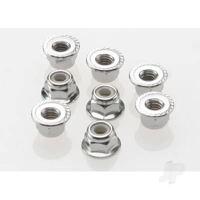 TRAXXAS Nuts, 4mm flanged nylon locking (steel, serrated) (8)