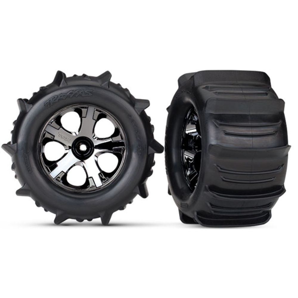 TRAXXAS Tires & wheels, 2.8" (black chrome, paddle tires, w/foam) GP