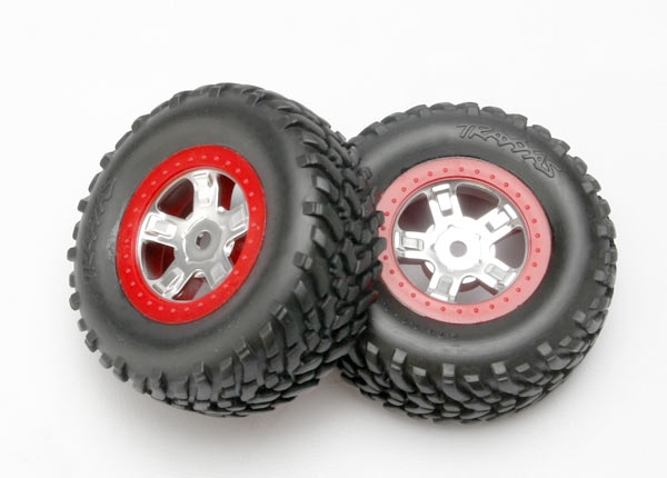 TRAXXAS Tires & wheels:SCT satin chrome w/red b'lock w/SCT(1ea R&L)