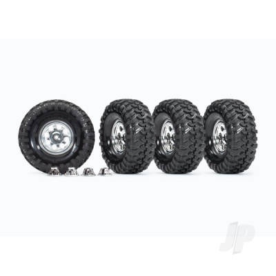Traxxas Tyres and wheels, assembled, glued (1.9' classic chrome wheels, Canyon Trail 4.6x1.9' Tyres) (4 pcs)/ center caps (4 pcs) (requires #8255A extended stub axle)