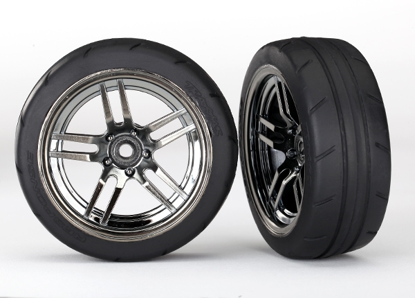 TRAXXAS Tires and wheels, assembled (split-spoke black chrome, 1.9'