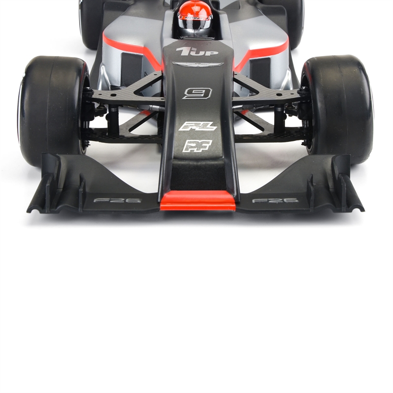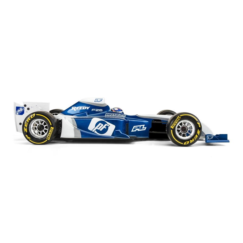 The area surrounding the rear pod has ample clearance for batteries, side tubes and motor wires, making the F26 incredibly easy to mount. Included with this body is a lightweight nylon driver helmet for an added touch of scale realism. The decal sheet includes steering wheel and seatbelt graphics as well as helmet visors and PROTOform logos in a wide variety of colors. This body is pulled in our lightweight, high-quality polycarbonate with overspray film, and is proudly Made in the USA.