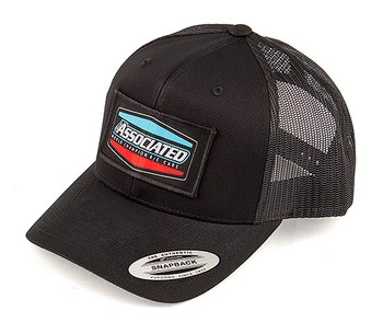 Team Associated Tri Trucker Hat, curved bill This black hat complements the color design of our Tri T-shirt. The open mesh hat keeps the sun at bay while allowing fresh air circulation and cooling. An adjustable snap strap means one-size-fits-all for any Team Associated fan.