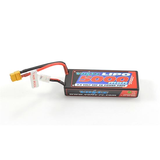 Experience the rugged durability of Voltz RC LiPo power with this 5000mAh 7.4V 50C hard case lithium polymer battery suitable for all radio control vehicles.