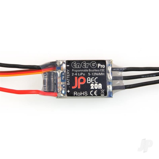 The JP EnErG Pro ESCs high power BEC has been specifically designed for extreme aerobatics and therefore has the capability to support the higher momentary peak demand loads to eliminate the possibility of unwanted shutdowns. It is also capable of supporting continuous simultaneous multiple servo operations typically found in CCPM equipped hardcore 3D electric helicopters.